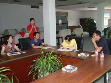 8月10日,郑州商品交易所副总经理王晓明、交割部总监刘鸿君等领导莅临华圣果业苹果交割库参观调研,华圣果业执行总经理彭小强、期货事业部总经理李蕾等陪同接待。 郑商所领导一行人首先前往工厂视察,彭总详细介绍了交割库的仓储情况、质检设备、货物交收场地及制度挂牌情况。随后,对公司展厅进行了参观,深入了解了公司的发展历史及未来规划。最后,在召开的座谈会上,期货部总经理李蕾详细汇报了7月份的苹果交割工作,交易所领导对我库本次的交割工作给予了充分肯定,给苹果交割库树立了榜样,值得借鉴与推广。希望我库在以后的交割当中继续保持高效、规范的作风。双方也就本次交割当中出现的问题进行了深入交流,彭总向交易所领导提出了若干建设性建议,交易所领导对此高度重视,表示会对提出的建议做深入研究。 观看检验设备 参观公司展厅 进行座谈交流