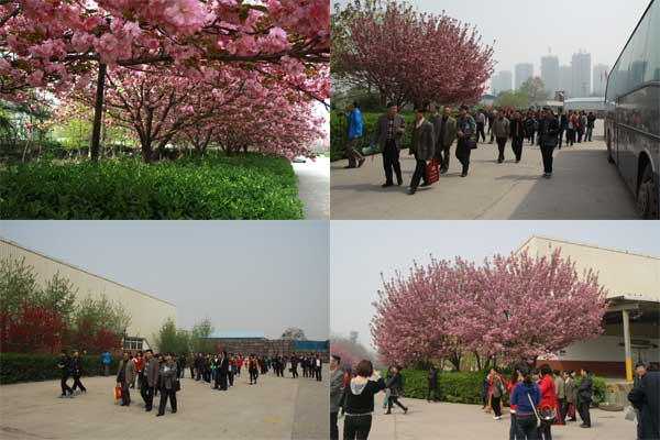 华圣果业是市、区两级园林绿化先进单位,自有土地3000余亩,核心工厂建筑260余亩,总投资3.5亿元,在册员工1500多人,是一座极具现代气息,四季有花有草,风景如画的花园工厂。每年春天成片成行的迎春、紫荆、莲翘、丁香、玉兰、月季、榆叶梅、桃花、樱花、梨花、苹果花次级开放,竞相争艳,群芳闹春,尤其是数百株近20年树龄的樱花树,盛开以后,花团锦簇,艳若朝霞,真是“满树和娇烂漫红,万枝丹彩灼春融”,年年都吸引大量游人前来观赏,流连忘返,赞叹不已。