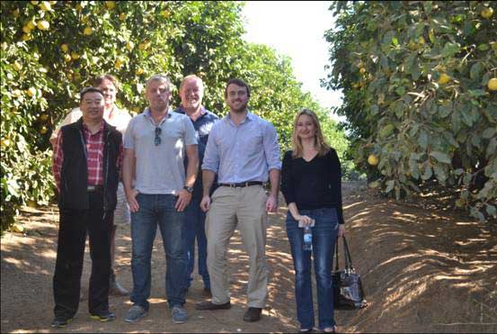 2014年6月12日,陕西华圣果业公司副总经理尚大伟在南非Chennells 果园实地参观考察柑橘。Chennalls 果园农场主等一行对陕西华圣果业公司的来访表示热烈的欢迎与亲切的问候,并对农场经营等情况进行全面细致的讲解。