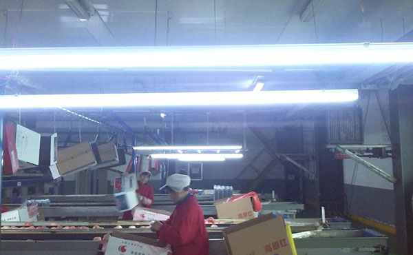 2014新果季来临之际,华圣果业工厂立足公司照明设施现状,本着高效、节能、环保的要求,组织人员对分选车间及气调库房的照明设施集中进行了改造,达到了预期效果。
