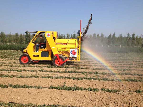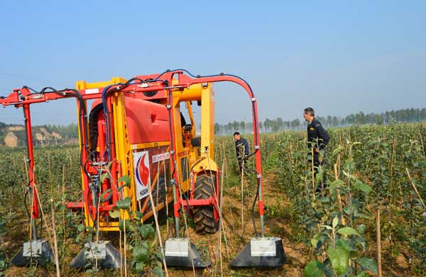 图为臂展式打药机现场作业