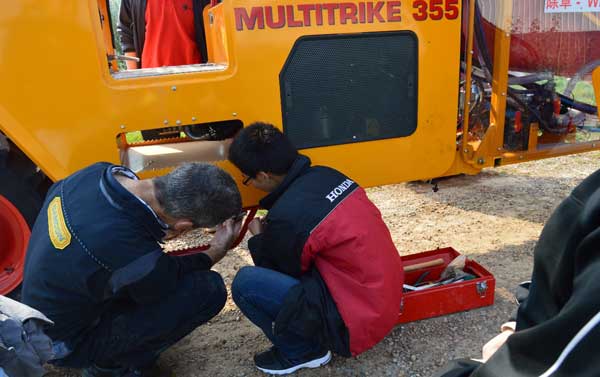 期间,Andre Stifter详细的对机械设备的各个零件的功能进行说明,并对各环节的使用方法和注意事项进行逐一示范,又手把手的指导公司机械操作人员对设备进行逐一的拆卸和重组,使其能熟练地掌握设备的操作要领。同时,还将设备分别在苗圃和压条圃进行演示。操作过程中,充分展现了该类设备的优良之处,其操作方便、喷洒均匀、工作效率高等特点给人留下深刻印象。