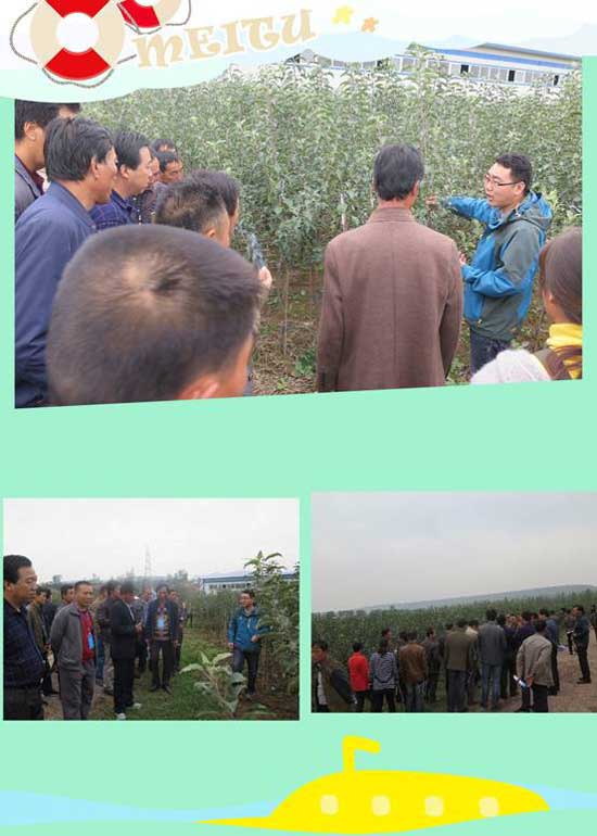 10月16日甘肃省天水市秦安县2016年新型职业农民培育工程苹果生产经营培训班大约70人前来宝鸡华圣基地参观。宝鸡华圣的技术员带领大家进行了参观,并对柿沟基地的基本情况进行了介绍。