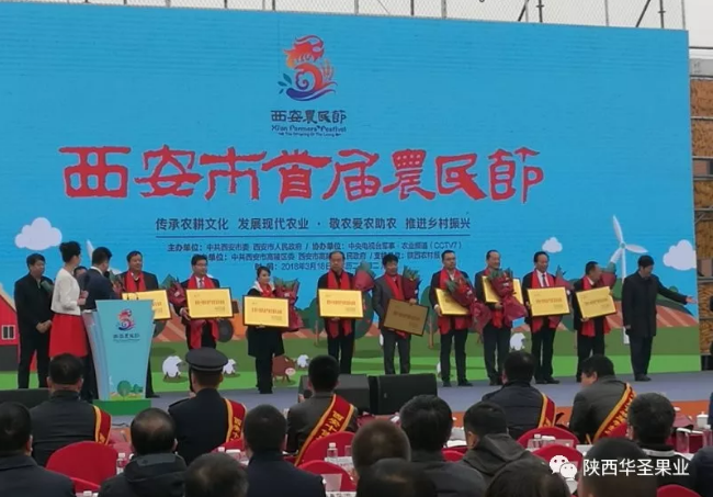 开幕式当天,对前期评选出的“三农”领域十个系列的“十佳”先进典型进行了通报表彰。华圣果业荣获西安“十佳”农业产业化龙头企业。