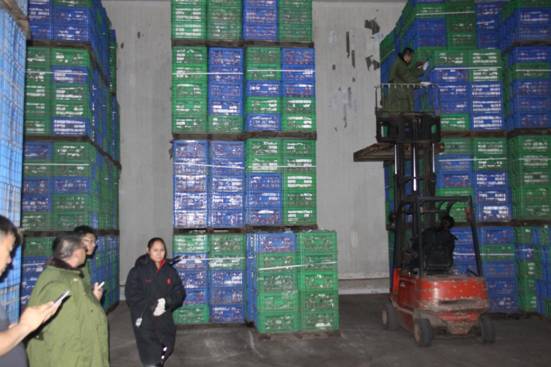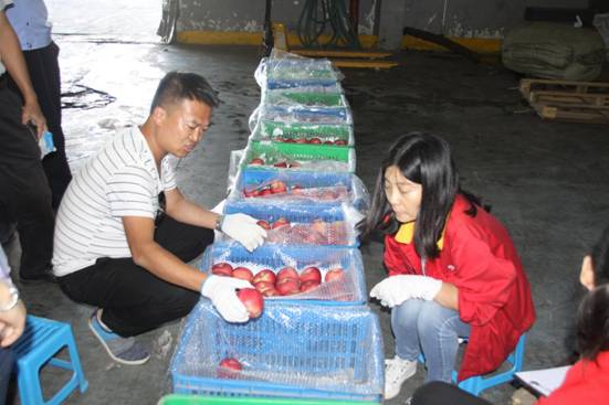目前第二家客户,已按照流程进行抽样验货,外观检验已经结束,外观检验结果符合交割质量要求,经客户确认对表观检验结果无异议。因时间关系,样果果心温度未达到检测条件,客户已将样果亲自封存,待温度达到检测条件后再进行理化检验。